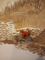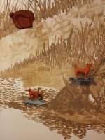 Madalí works with scenes that take place in the north of her city. She observes and translates into images the context where she lives and works. In ceramics, she found numerous possibilities to experiment with textures and colors that approximate the feelings carried by the experiences she brings to us: the earth, the street, the mud, the people, and the neighborhoods. Madalí uses local clay as her raw material, which she extracts from nearby waterways. This material allows her to create a link between the effusiveness of the images and the symbolism of the medium. Through drawing, clay, and recovered materials she finds in dumpsters and on the street, she reconstructs those narratives that traverse her experience, both collective and personal. Her artistic practice remains in constant dialogue with the people around her on her paths and in the spaces where she teaches workshops; there she learns to think of her artistic production as a medium strongly shaped by the social context she inhabits.