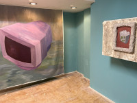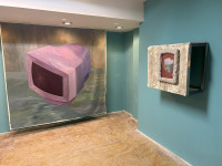 He participated twice in BienalSUR: in 2019 with Sobre Mi, an audiovisual work in the group exhibition Dos museos y un río, and in 2023 with Nuevo Monumento a la Bandera, a monument in the group exhibition Cuando la casa se quema. In 2021 he was selected for the 12th Premio Itaú de Artes Visuales with Trust in the digital ages, a video installation about life in electronic devices. In 2022 he presented the curatorship of M a c r o m e m e s, the first meme collection in a contemporary art museum, in Espacio Insuficiente, an exhibition of said collection. That same year he also participated with a painting in the 15th Premio de Pintura Bancor.