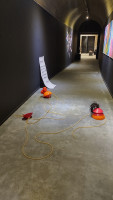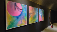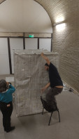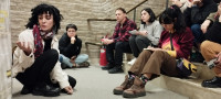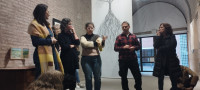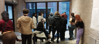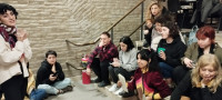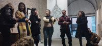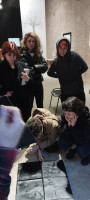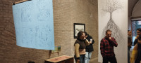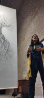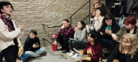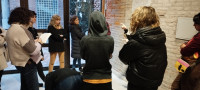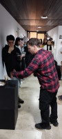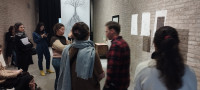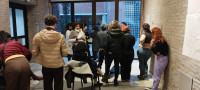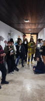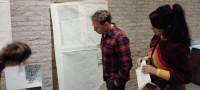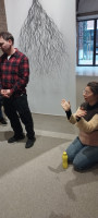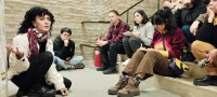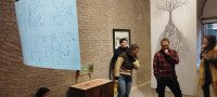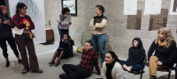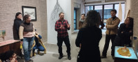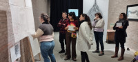 Durante el encuentro, lxs artistas realizaron un ensayo de muestra en el Centro Cultural Parque de España donde tuvieron luego una clínica con Georgina Ricci y Eduardo Basualdo