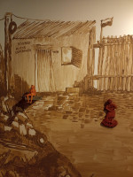 Madalí works with scenes that take place in the north of her city. She observes and translates into images the context where she lives and works. In ceramics, she found numerous possibilities to experiment with textures and colors that approximate the feelings carried by the experiences she brings to us: the earth, the street, the mud, the people, and the neighborhoods. Madalí uses local clay as her raw material, which she extracts from nearby waterways. This material allows her to create a link between the effusiveness of the images and the symbolism of the medium. Through drawing, clay, and recovered materials she finds in dumpsters and on the street, she reconstructs those narratives that traverse her experience, both collective and personal. Her artistic practice remains in constant dialogue with the people around her on her paths and in the spaces where she teaches workshops; there she learns to think of her artistic production as a medium strongly shaped by the social context she inhabits.