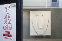 Estafa piramidal is an attempt to unlearn some of what the artist thinks he knows about the art system and market, in order to enjoy the act of making. At the same time, it is a trap and one more link in the pyramid. A show that arrives almost alongside the holiday vitel toné and cider, the year-end reckonings, and New Year’s promises. A bit of humor tinted by the drama of the times.