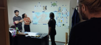 Durante esos quince días, ambos llegaron desde Tucumán y se instalaron en los talleres de CRUDO donde compartieron espacio con otros 7 artistas de la ciudad. Durante la residencia desarrollaron su producción artística al mismo tiempo que recorrieron la ciudad, visitaron instituciones y establecieron vínculos con artistas y espacios locales. El jueves 12 de octubre llevaron adelante una presentación en el Museo MACRO de Rosario, compartiendo parte de sus procesos. Finalmente, el jueves 19 de octubre se realizó un estudio abierto en la SALA II de CRUDO (Italia 1044, Rosario), instancia en la que mostraron la producción realizada durante la experiencia.