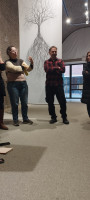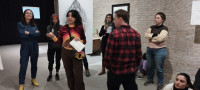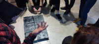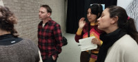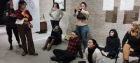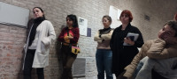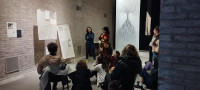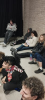 Durante el encuentro, lxs artistas realizaron un ensayo de muestra en el Centro Cultural Parque de España donde tuvieron luego una clínica con Georgina Ricci y Eduardo Basualdo